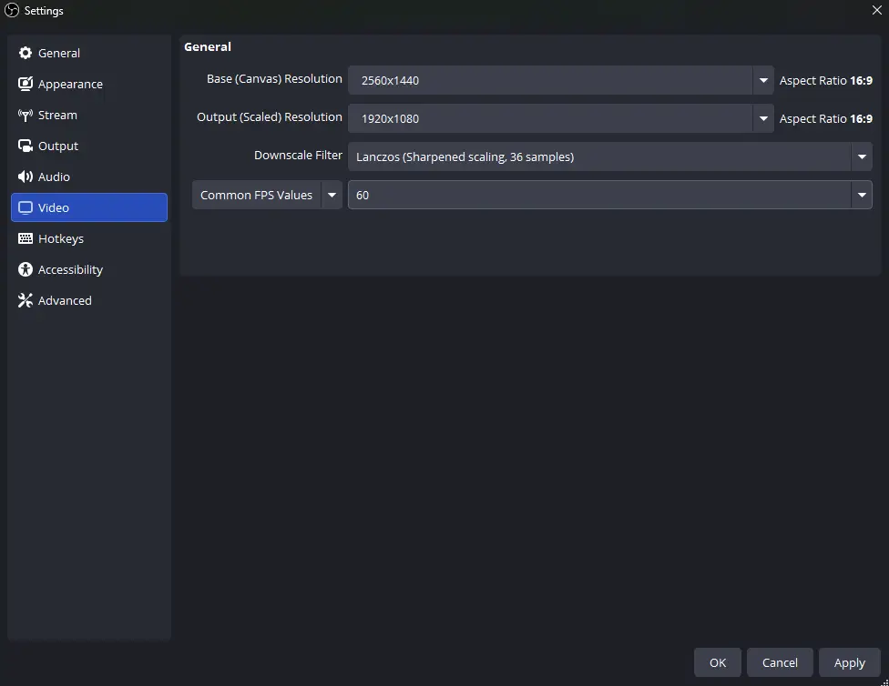 – The Performance Saver: 1704×960 (This resolution looks sharper than 720p but requires less bitrate than 1080p). - Downscale Filter: Choose Lanczos (Sharpened scaling, 36 samples) for the best image clarity.